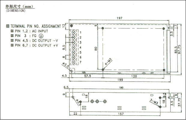 注:1、以上參數(shù)測試條件為:230VAC輸入,額定負(fù)載,25℃ 70% RH.濕度。