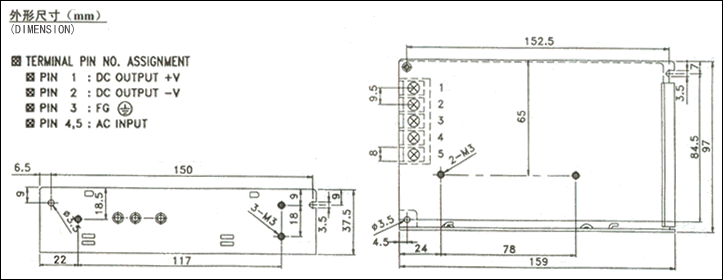 注:1、以上參數(shù)測試條件為:230VAC輸入,額定負(fù)載,25℃ 70% RH.濕度。 2、容差:包括設(shè)定容差,線路穩(wěn)定度,負(fù)載穩(wěn)定度(注5)。 3、紋波測試:20MHz 用A12"雙絞線,中斷用0.1uF&47uF電容器短路。 4、進(jìn)線電壓穩(wěn)定度測試:滿負(fù)載時進(jìn)線最低電壓到最高電壓。 5、負(fù)載穩(wěn)定度測試:負(fù)載從0%到100%。